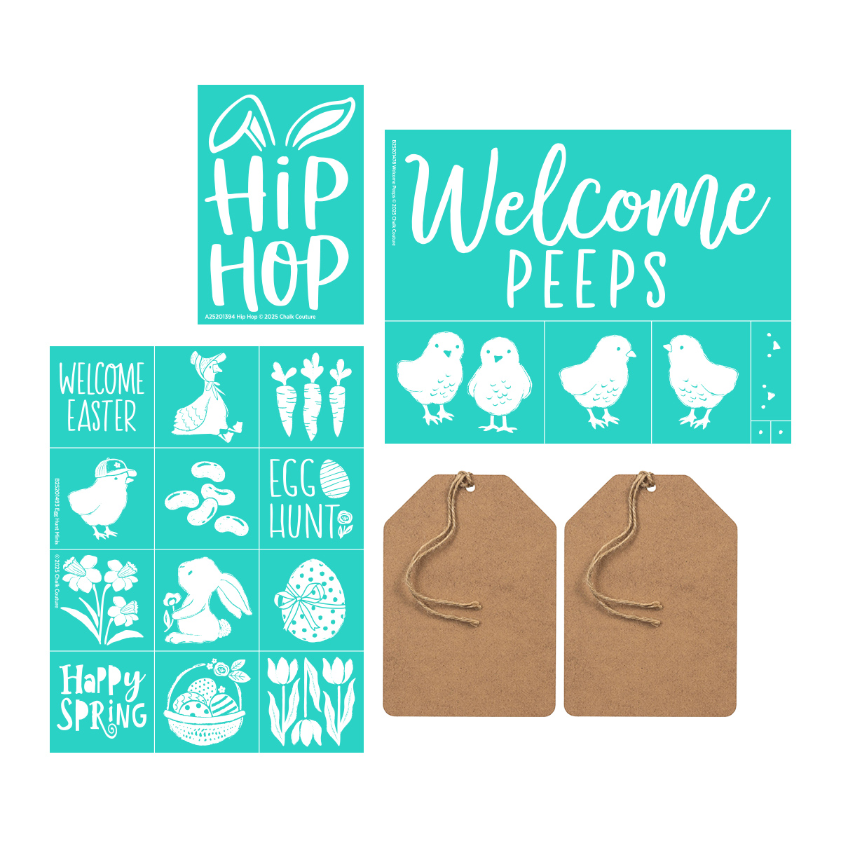 This bundle includes the Hip Hop, Egg Hunt Minis, and Welcome Peeps Chalk Transfer® designs and a Simple Tag (2-Pack, 5" x 7").